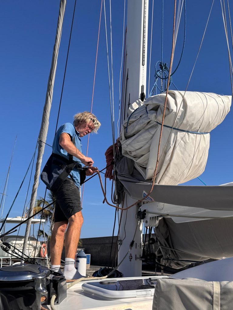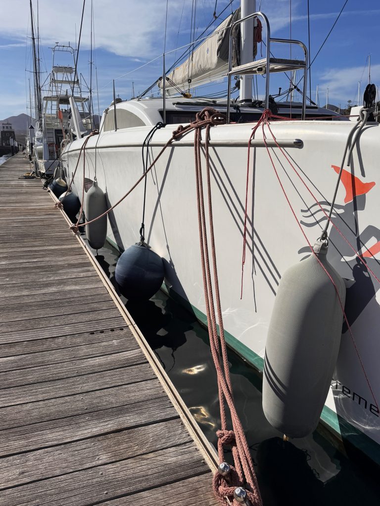 Die nächste Baustelle im Arbeitsplan sind unsere Verbraucherbatterien. Bereits auf der Fahrt von Guernsey nach Lanzarote hatten wir zweimal ein komplettes Batterieblackout. Die Spannung ist von einer Minute auf die andere von 25 Volt auf 20 Volt abgesackt. Wir haben uns daher entschlossen, endgültig Abschied von den bisher eingebauten normalen Blei-Säurebatterien zu nehmen und auf Lithium Eisenphosphat-Batterien umzustellen. Die Batterien und weitere Komponenten, die zum Einbau nötig sind, sind mittlerweile in Puerto Calero eingetroffen. Der Einbau der Victron-Batterien soll voraussichtlich in der kommenden Woche erfolgen und wird zwei bis drei Tage in Anspruch nehmen, an denen das Boot komplett stromlos sein wird.