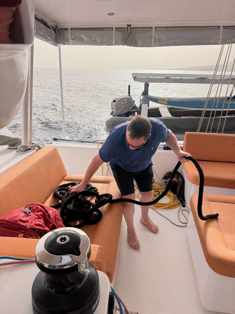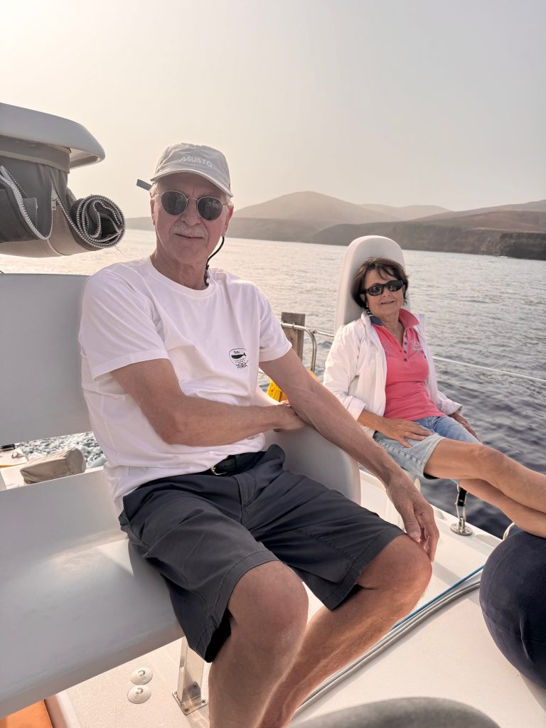 Und dann hatten wir noch einen wunderschönen Tag vor Anker, vor den malerischen Papagayostränden mit zehn lieben Freunden an Bord. Der Wind hat bei diesem Ausflug zwar gefehlt und die Dieselmotoren mussten ran. Dafür hat uns Cornelia mit einem schön gedeckten Mittagstisch, voll mit leckeren Köstlichkeiten, sehr verwöhnt. Wir alle haben bei milden Temperaturen ein Bad im blauen Meer genossen, pure Harmonie.
