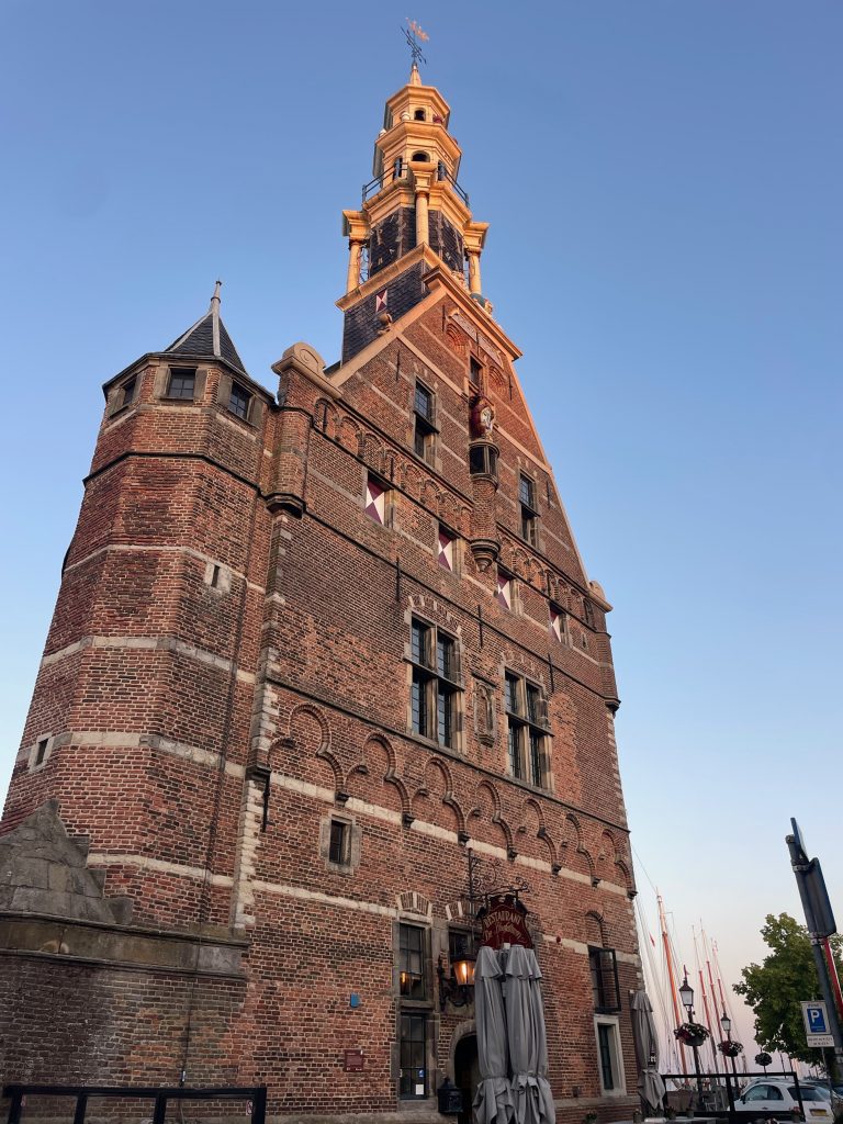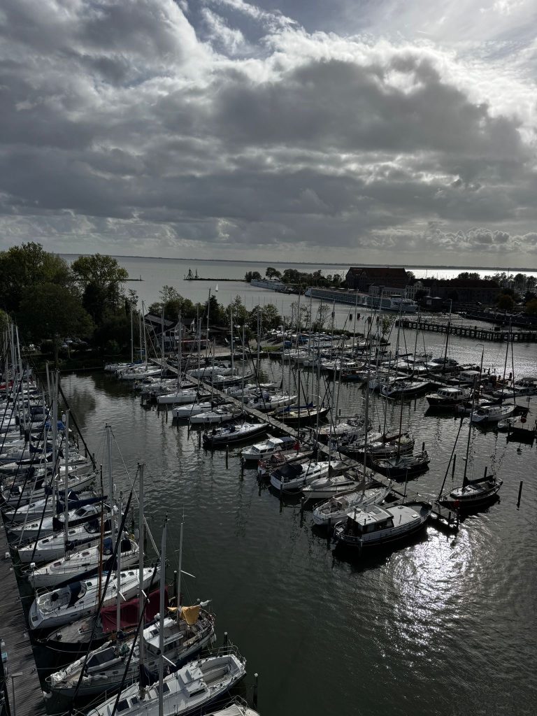 Als erstes waren wir mit Kees und Maureen im Turm, bei den „Hooftoren“, ein Restaurant am Hafen, das wir schon lange und gut kennen. Volker isst dort auch immer wieder das gleiche, Spareribs, von denen er sagt, sie seien noch besser als die von ihm gemachten. Ich bin da nicht ganz einverstanden, aber ich halte mich dort gerne an die Dinge aus der See. Es gibt erstklassige Miesmuscheln, einen ganzen Kochtopf voll, und auch der Fisch vom Tag ist immer sehr gut. Beim vorletzten Mal haben wir dort den ultimativen Nachtisch entdeckt: „Advocaat met Slagroom“, also lauwarmer Eierlikör mit Schlagsahne. Mmmmhmmm! (Das haben wir dann auch mal auf dem Boot nachgemacht, da schmeckt es ebenso gut.)
