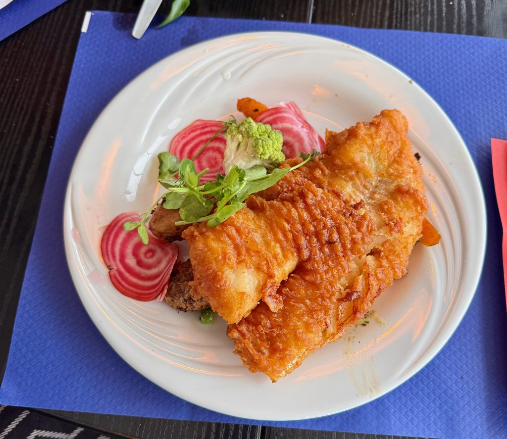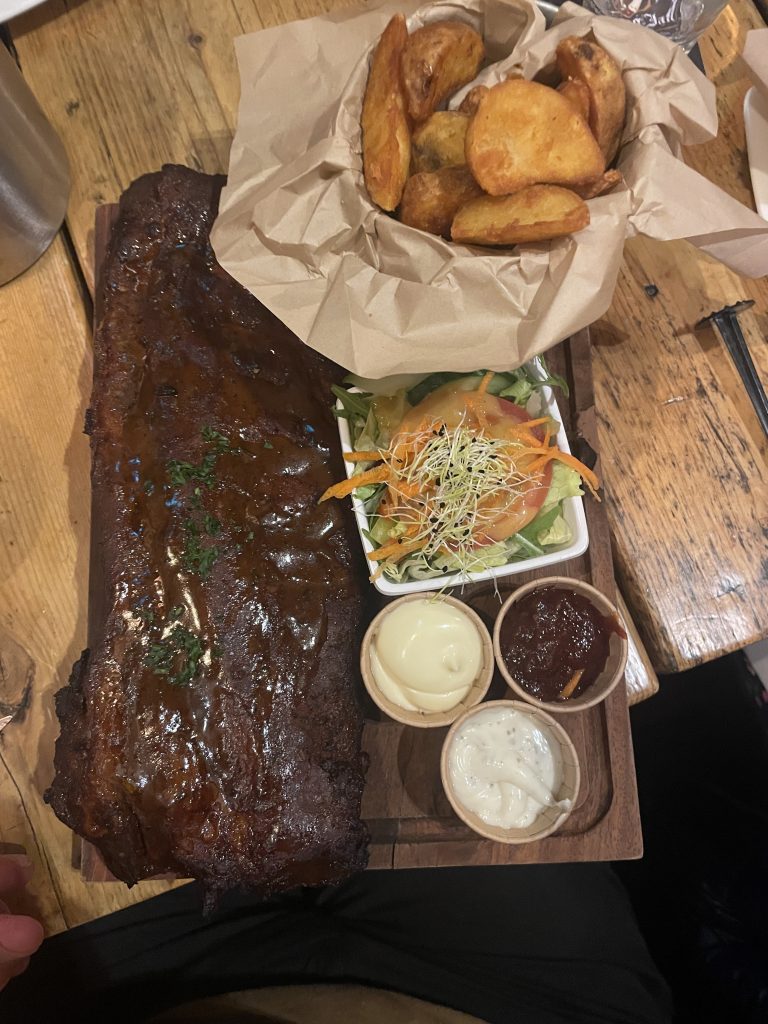 Nachdem wir uns alle ein bisschen Landfein gemacht haben, ging es auf eine Besichtigungstour durch die quirlige Innenstadt. Direkt im Anschluss liefen wir  steil bergauf in  das gut bewertete Restaurant mit britischen Gerichten „Pickled Pig“, zum herbeigesehnten und wohlverdienten Pint Bier und Abendessen. Wir wurden sehr freundlich empfangen und das Essen war wirklich herausragend gut. Ich hatte einen traditionellen Homemade Pie und Matthijs und Cornelia erfreuten sich an ihrem Fischcurry. Es folgte zur Feier des Tages noch ein Dessert, beim Segeln werden ja so viele Kalorien verbraucht. Danach gab es noch einen kleinen Schlummerdrink an Bord, und wir ließen die Eindrücke der bisherigen Segelreise Revue passieren.