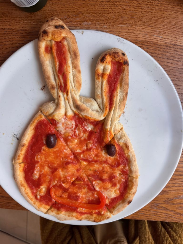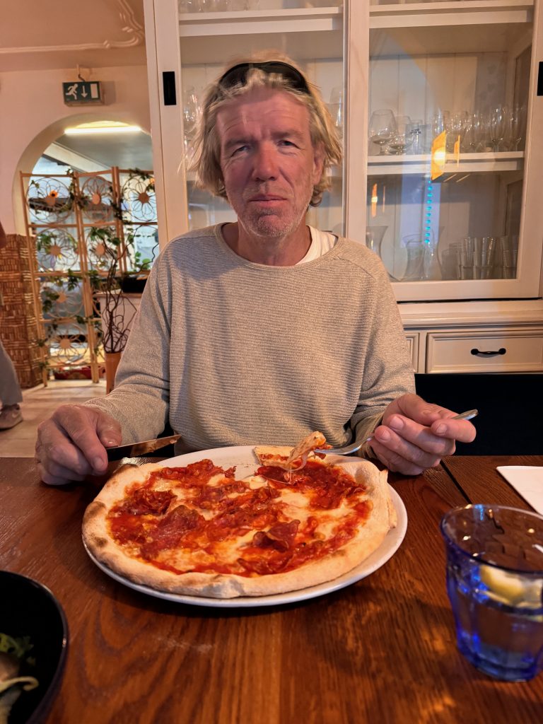 Bei unserem Lieblings-Italiener sind wir auch einen Abend eingekehrt, und auch hier wurden wir nicht enttäuscht. Beim letzten Mal war Zoey mit uns dort, und sie bekam eine Kinderpizza, die so hübsch aussah, dass man sie fast nicht essen wollte. Diesmal hat Volker sich auch so eine Pizza bestellt, allerdings in der Erwachsenen-Größe, der Teig dort schmeckt einfach köstlich, und ich bekam meine favorisierte Melanzane Parmiggiana, Auberginen in Tomatensoße, „da da daaa, ich liebe es“!