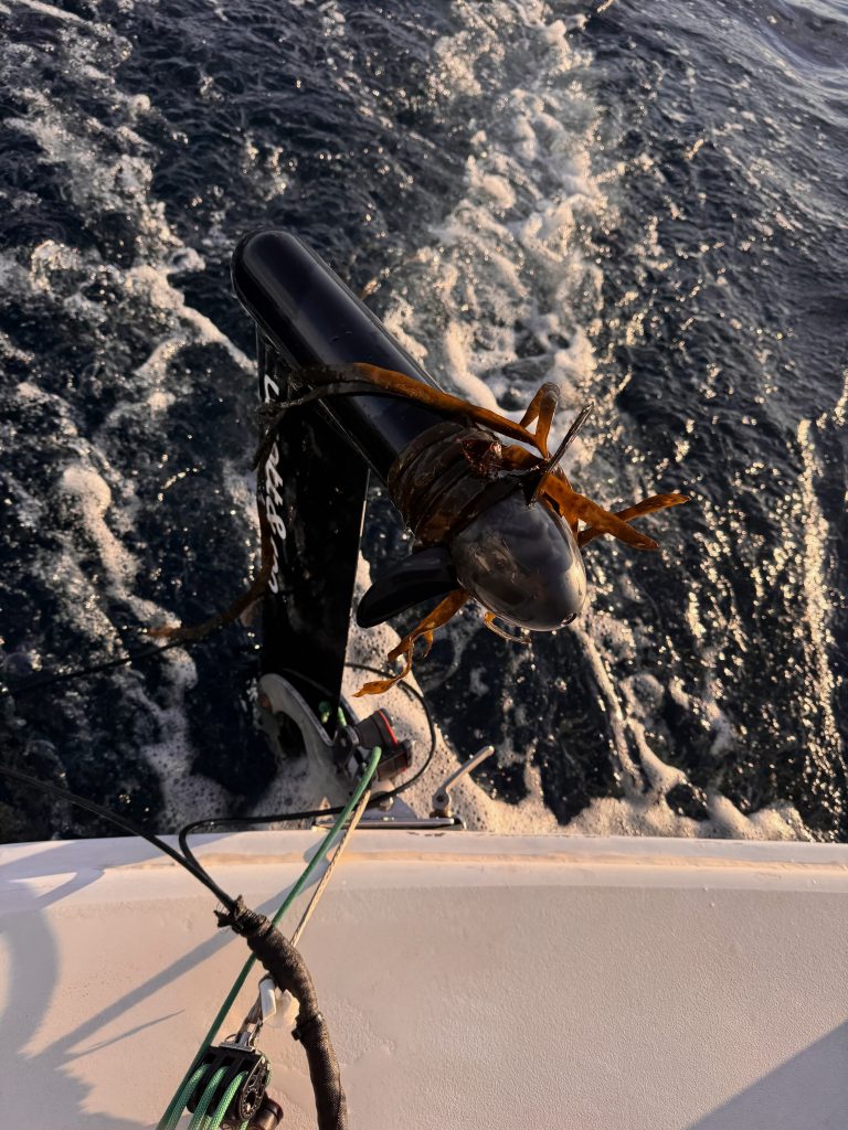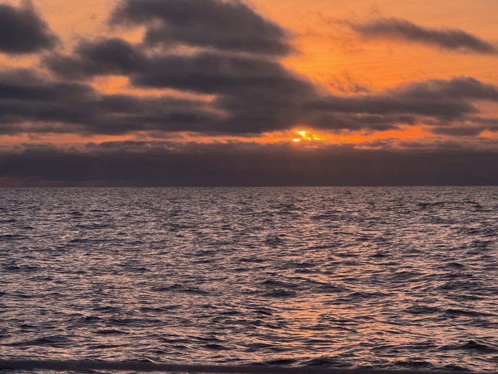 Die Nacht über mussten wir immer noch mit dem Motor fahren. Ich hab wieder mal bis 06:00 Uhr geschlafen, heute allerdings mit weniger schlechtem Gewissen, denn da ja hier auf dem Ozean fast kein Verkehr ist, kann Volker zwischendurch auch mal 20-30 Minuten am Stück schlafen.