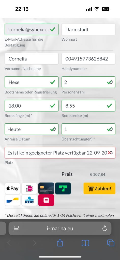 Pünktlich um sechs Uhr verlassen wir die Seaport Marina, ohne das Liegegeld bezahlt zu haben. Das war nicht unsere Absicht, sondern der Technik der neuen IMarina-App geschuldet. Brav habe ich nach Ankunft den QR-Code an unserem Liegeplatz gescannt, dann landet man auf der Seite der Marina, versuche zu bezahlen, aber da bekomme ich die Meldung, es sei momentan kein Liegeplatz für uns frei. Wir liegen aber genau an dem Platz, an dem ich den entsprechenden QR-Code scannen konnte. Und der Platz ist auch wirklich groß genug für uns. Na gut, dann werden wir die 107 € eben im nächsten Restaurant „verfressen“. (Nachtrag: Am nächsten Tag kam eine Rechnung per Mail, verstecken geht nicht mehr so gut in Zeiten von Internet und AIS, das war ja auch gar nicht unsere Intention.)