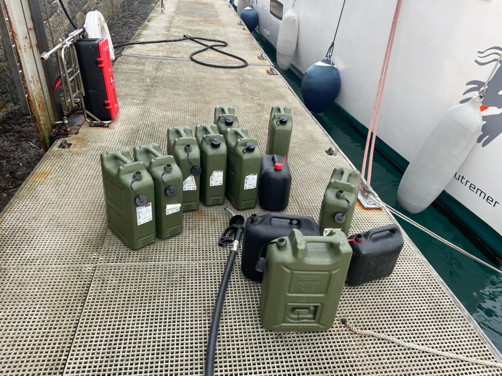 Nach Rücksprache mit dem Hafenmeister  haben wir kurz darauf fix abgelegt und sind schnell mit dem Kat zur Tankstelle gefahren, um sämtliche Reservekanister und die beiden Haupttanks des Bootes voll zu tanken, um anschließend wieder zu unserem Liegeplatz zurück zu kehren.
