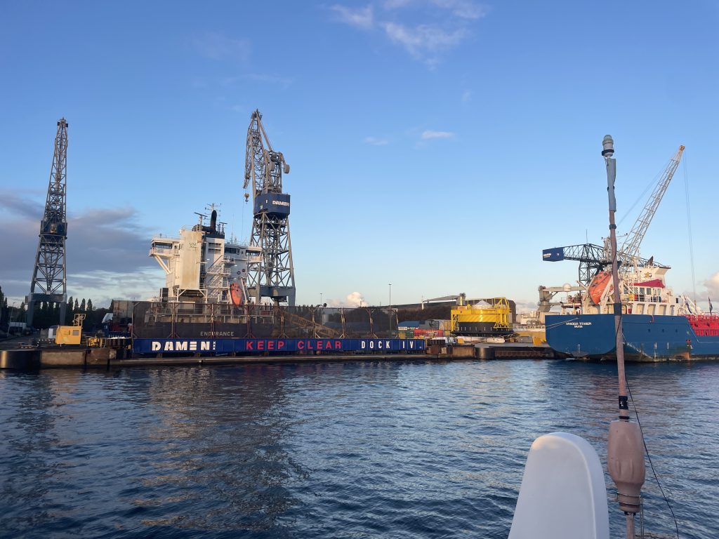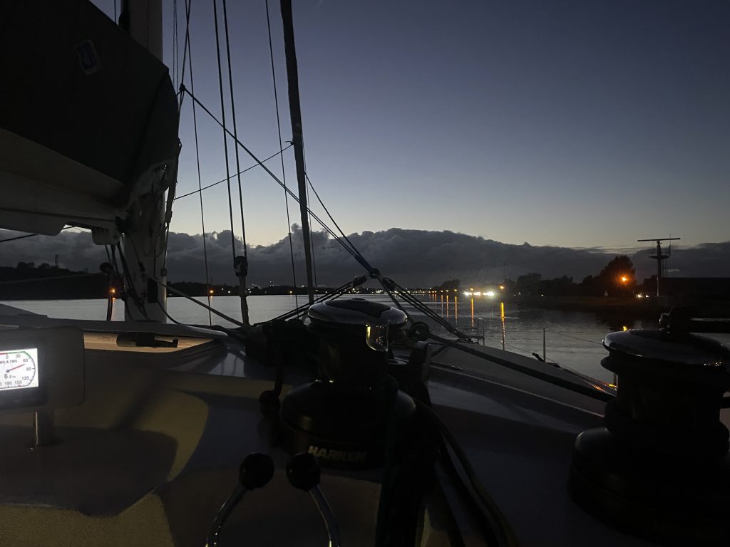 Weiter geht es an den unbeleuchteten Bojen vorbei in die Seaport Marina, wo um 21:30 die Leinen fest sind. Es waren nur 35,7 sm mit zwei Schleusen, aber nun ist es auch genug, und nach einem alkoholfreien Radler fallen wir alle drei müde ins Bett. Morgen früh um sechs soll es weitergehen.