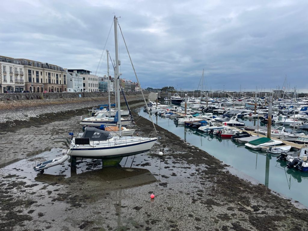 Der Yachthafen für Besucher heißt Viktoria Marina und liegt mitten in der Stadt St. Peter Port. Der super freundliche Hafenservice weißt die Plätze zu und regelt die Einfahrt in den Hafen, die rund drei Stunden vor und nach Hochwasser möglich ist. Ein Drempel bewahrt das innere Hafenbecken vorm Austrocknen bei Niedrigwasser. Der Gezeitenhub ist mit sechs Metern imposant. Wir kamen Donnerstag Abend in St. Peter Port an.