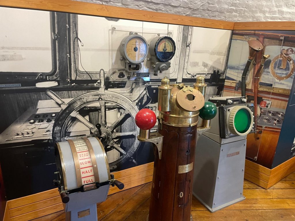 Wir steigen am Wrackmuseum aus, laufen zum Ticketschalter, der freundliche Mitarbeiter weist uns darauf hin, dass man nicht mit der Kreditkarte die Eintrittstickets kaufen kann. Wir haben leider keine englischen Pfund mehr dabei. Macht aber nichts, er lässt uns ins Museum rein und meint, dass wir dann nach dem Besuch die Tickets im Schmuckgeschäft hinter dem Café auf der gegenüberliegenden Straßenseite kaufen können.