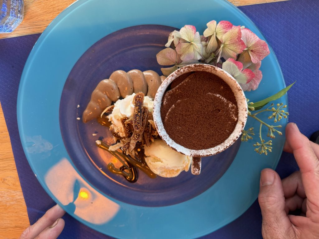 Am frühen Abend gönnen wir uns ein köstliches Abendessen im Clubrestaurant. Es war wieder wunderbarer. Man wird empfangen wie bei Freunden, der Service ist super freundlich. Mein Tunfisch war eine Sensation, Volker genoss sein Ribeye sehr, und die Creme brulée war eine Offenbarung, ganz ungewöhnlich begleitet von einem hinreißenden Mousse au Chocolat. Das Lokal ist wirklich ein Gewinn für den Hafen.