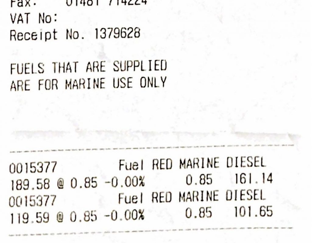 Motoren BB 191, SB 190, Logge 7800, 27.09. 309 l roten Diesel getankt