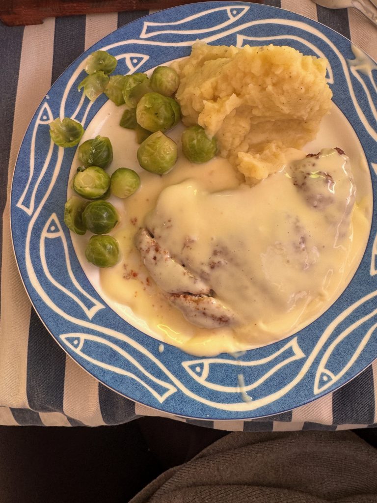 Wir essen heute deftig, Volker hat einen Eintopf aus Grünkohl, englischem Sellerie, Fenchel, Kartoffeln und Mettwürstchen gekocht, sehr lecker und sehr nahrhaft. Nur der Grünkohl war eine Herausforderung an die Kaumuskeln. Irgendwie hat der Grünkohl von den Kanalinseln eine andere Konsistenz als daheim.