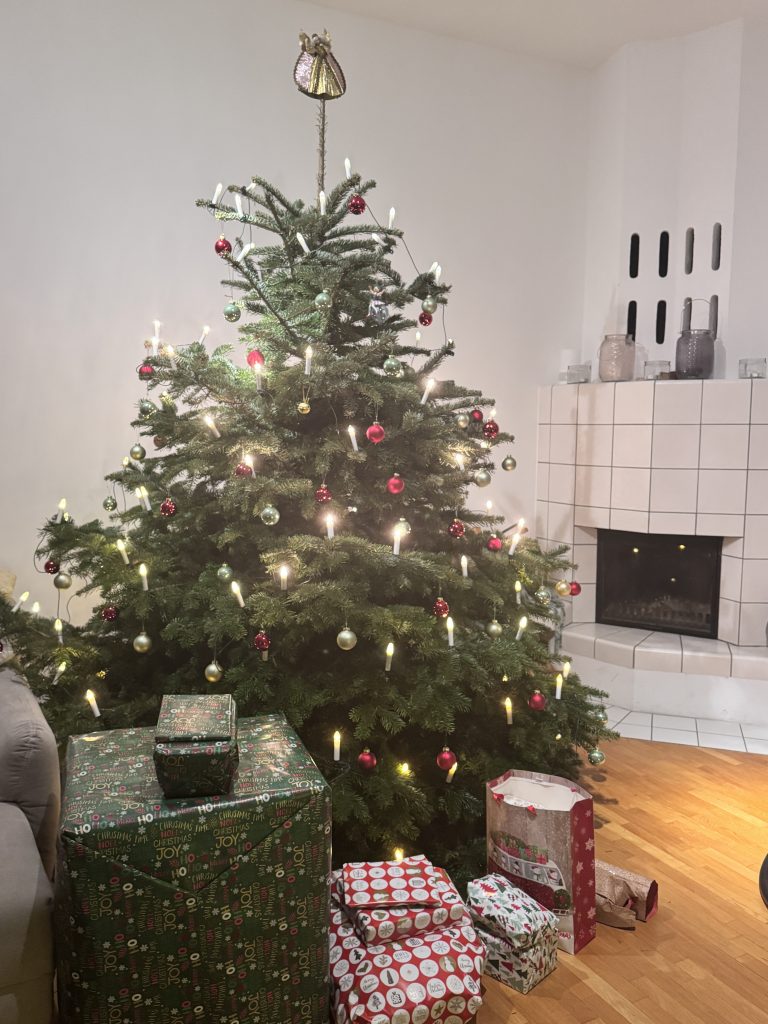 Heute ist Heilig Abend, die Krippe ist aufgebaut, das Engelsorchester schaut auf den Maestro und der Tannenbaum ist geschmückt, die eingepackten Geschenke liegen darunter. Alles ist bereit für die große Familien-Weihnachtsfeier mit unseren Kindern und Enkelkindern, die bei uns traditionell am 25. Dezember stattfindet.