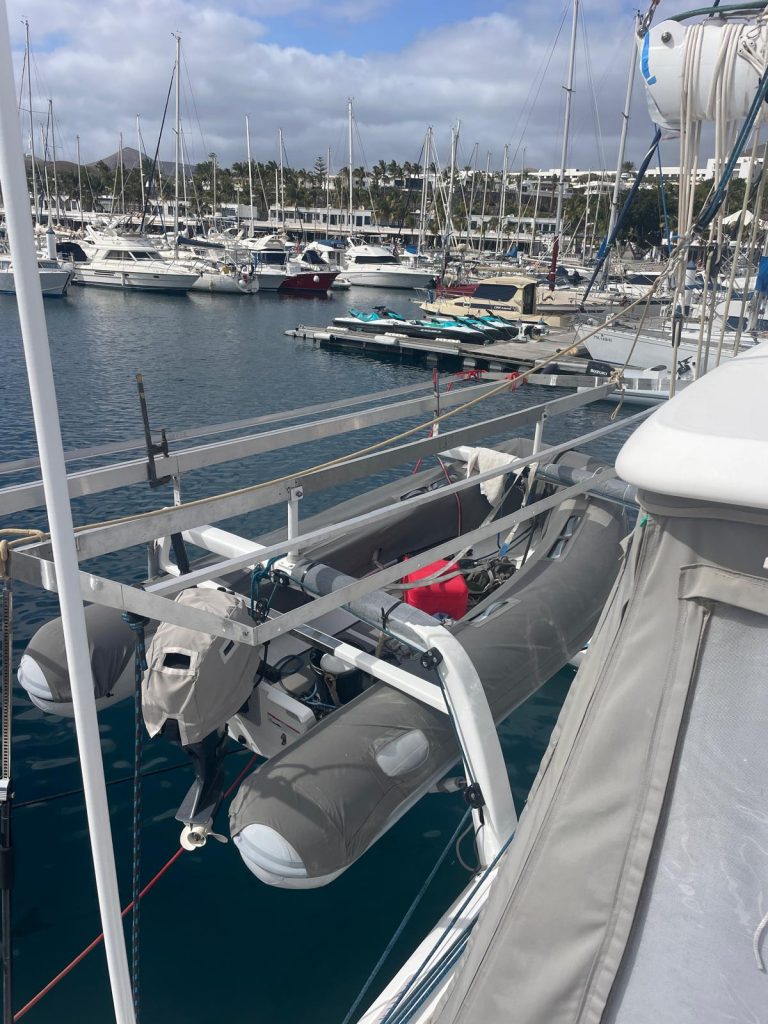 Nach einem angenehmen Flug sind wir jetzt wieder an Bord, und das Wetter auf unsererLieblingsinsel ist deutlich schlechter als deutsche Frühling. Die Temperaturen sind wohl dieselben, aber dunkle Regenwolken ziehen aus Nordwesten heran, ein Sturmtief ist im Anmarsch. Der letzte kanarische Sturm ist gerade mal drei Tage her, bei bis zu 50 Knoten Wind hat es ein paar unserer Zeltgummis zerrissen, die ich gestern gleich durch neue ersetzt habe.