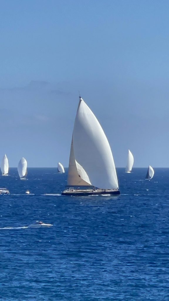 Wir sind gerne dabei, mit vielen anderen Booten von der Insel, wenn die Ein- und Mehrrumpfer eine Boje direkt vor unserer Marina an Backbord lassen müssen. Und jedesmal sind wir fasziniert von den Booten, den perfekt einstudierten Manövern und den enormen Geschwindigkeiten, die diese Schönheiten des Meeres nach der Umrundung der Boje ganz schnell erreichen.